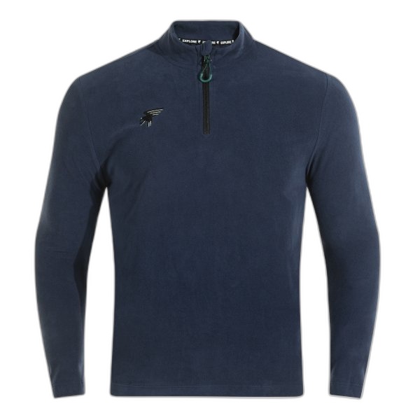Praktický design pro sportovce Půlzip s blokací a ochranným krytem na bradu umožňuje snadnou regulaci teploty a ochranu před větrem. Absence kapes zajišťuje, že vás nic neomezuje v pohybu, a semi-fitted střih se přizpůsobí tělu, aniž by vás omezoval. |