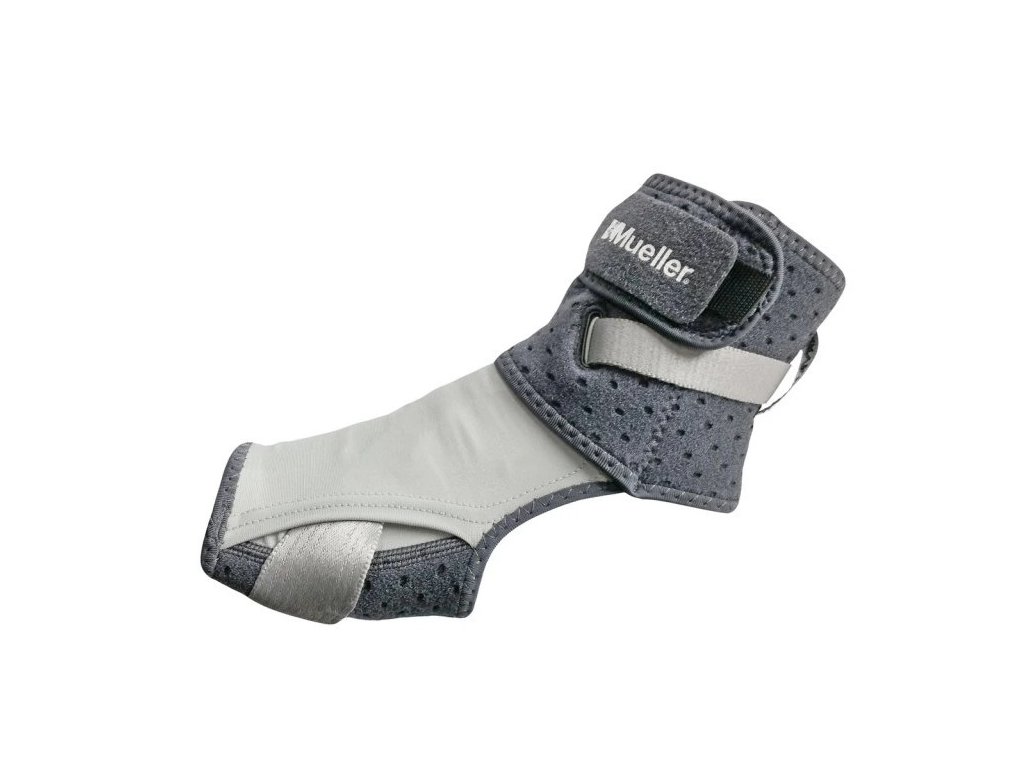 Mueller Plantar Fasciitis Adjust-to-Fit Foot Support je speciální podpora chodidla určená pro noční použití při potížích s plantární fasciitidou. Během spánku jemně natahuje plantární fascii a Achillovu šlachu, čímž pomáhá snižovat ranní bolest paty a ztuhlost.