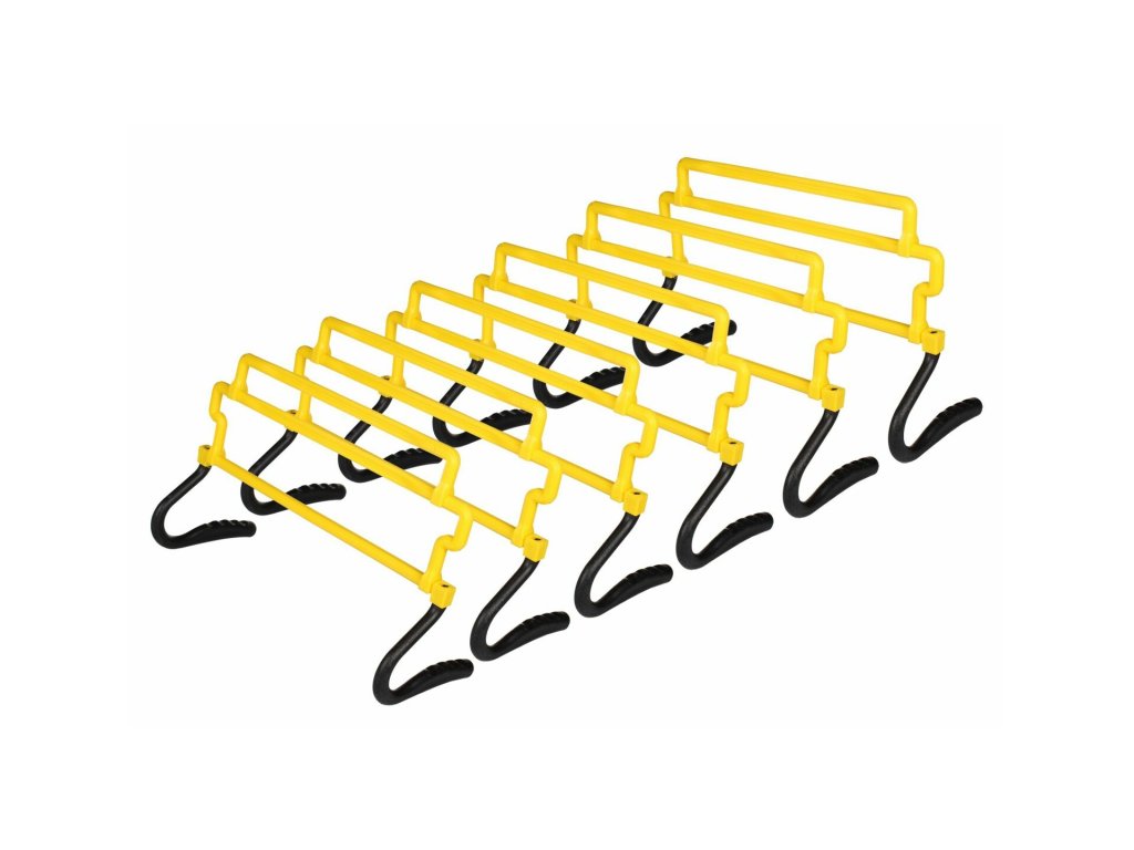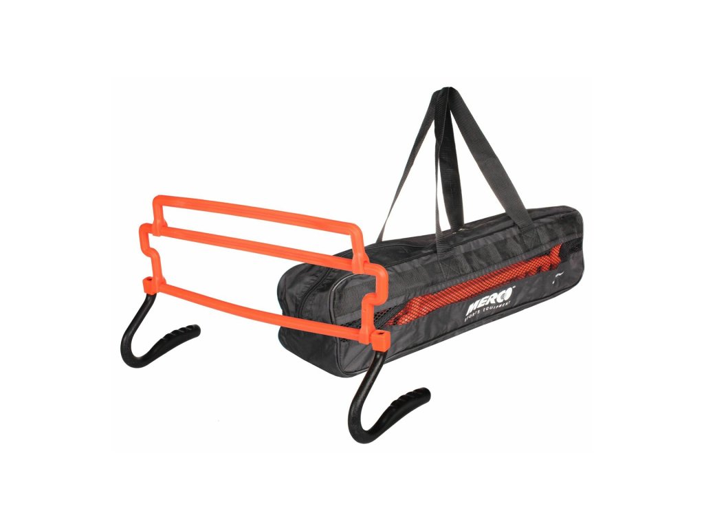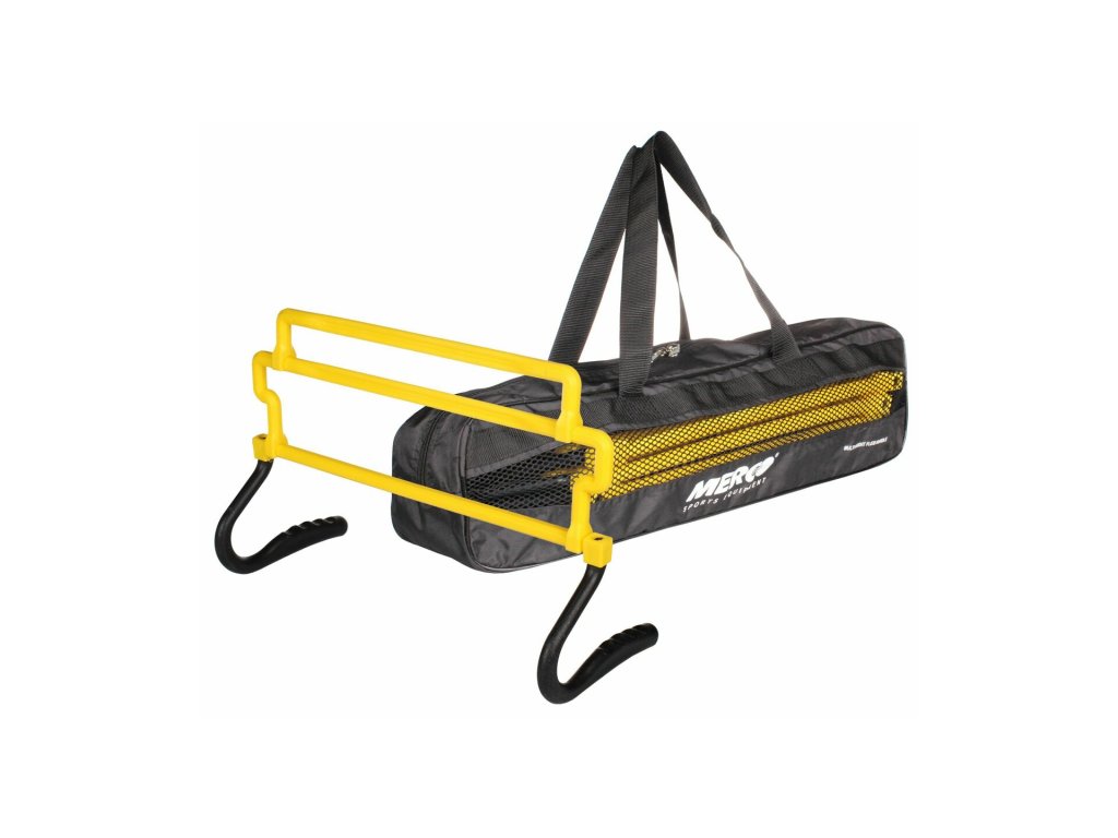 Sada šesti nastavitelných překážek Hurdle v praktickém obalu pro snadné uskladnění a přenášení. Nastavitelná překážka Merco Hurdle je univerzální tréninková pomůcka, která nalezne své uplatnění pro kondiční cvičení téměř ve všech sportovních odvětví. Skládací překážka je vyrobená z polyethylenu s vysokou hustotou. Pro větší variabilitu cvičení lze její výšku nastavit na tři různé úrovně - 14 cm, 24 cm nebo 29 cm. Šířka překážky je 44 cm a její hmotnost přibližně 380 g. Je vhodná pro použití v tělocvičnách i venku během letní přípravy.