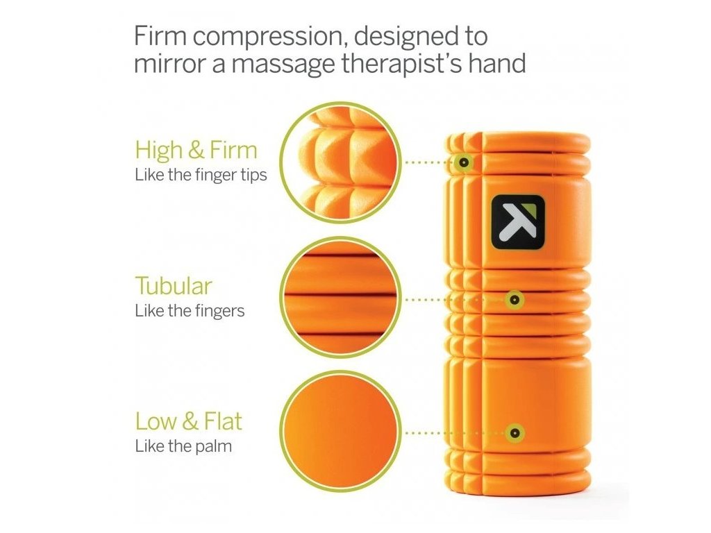 TriggerPoint GRID 1.0 je masážní válec s dutým jádrem a patentovaným povrchem s různou hustotou. Speciální zóny napodobují práci rukou maséra a umožňují účinnou masáž svalů, fascií a zatuhlých míst.